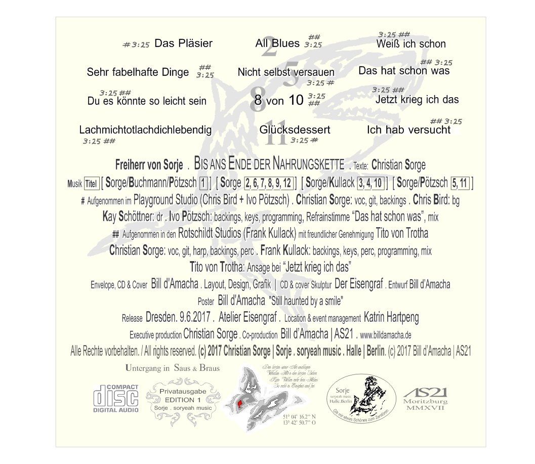 Daß Sorje nie gefällig sein will, gefällt. Und verführt zum Immerwiederhören. Es ließe sich noch viel sagen über dieses Album, überwiegend Gutes. Eine Compilation voller Leckerbissen allemal, für Bauch, Kopf und Herz. Bei aller Befangenheit: Ich denke, man sieht sich, am Ende der Nahrungskette.