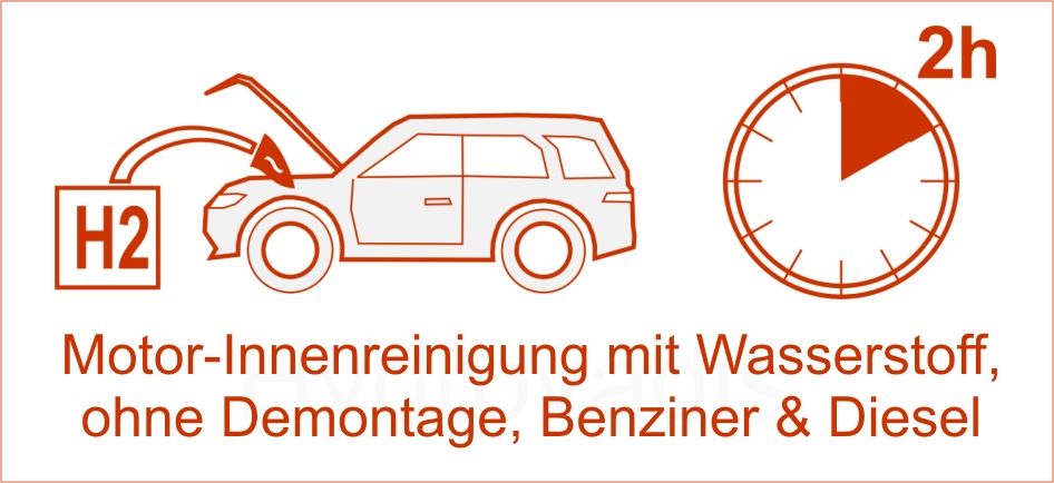 Ohne gefährliche Bröckchenbildung. Und ohne Demontage. Durch Einleiten angemessener Mengen Wasserstoff (+Sauerstoff) in den laufenden Motor werden Benziner und Diesel ganz sanft von schädlichen Ablagerungen befreit. Ventile, Kolbenringe, Drosselklappe, AGR-V, Turbolader ... ebenfalls alles frei.
